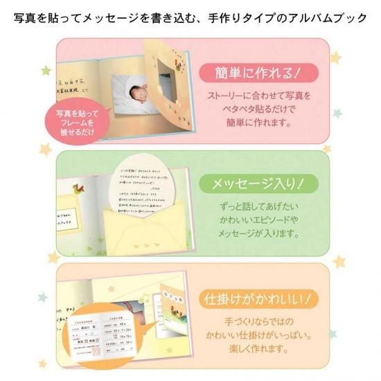 誕生からバースディまでのお写真が入るおはなし付きのアルバム